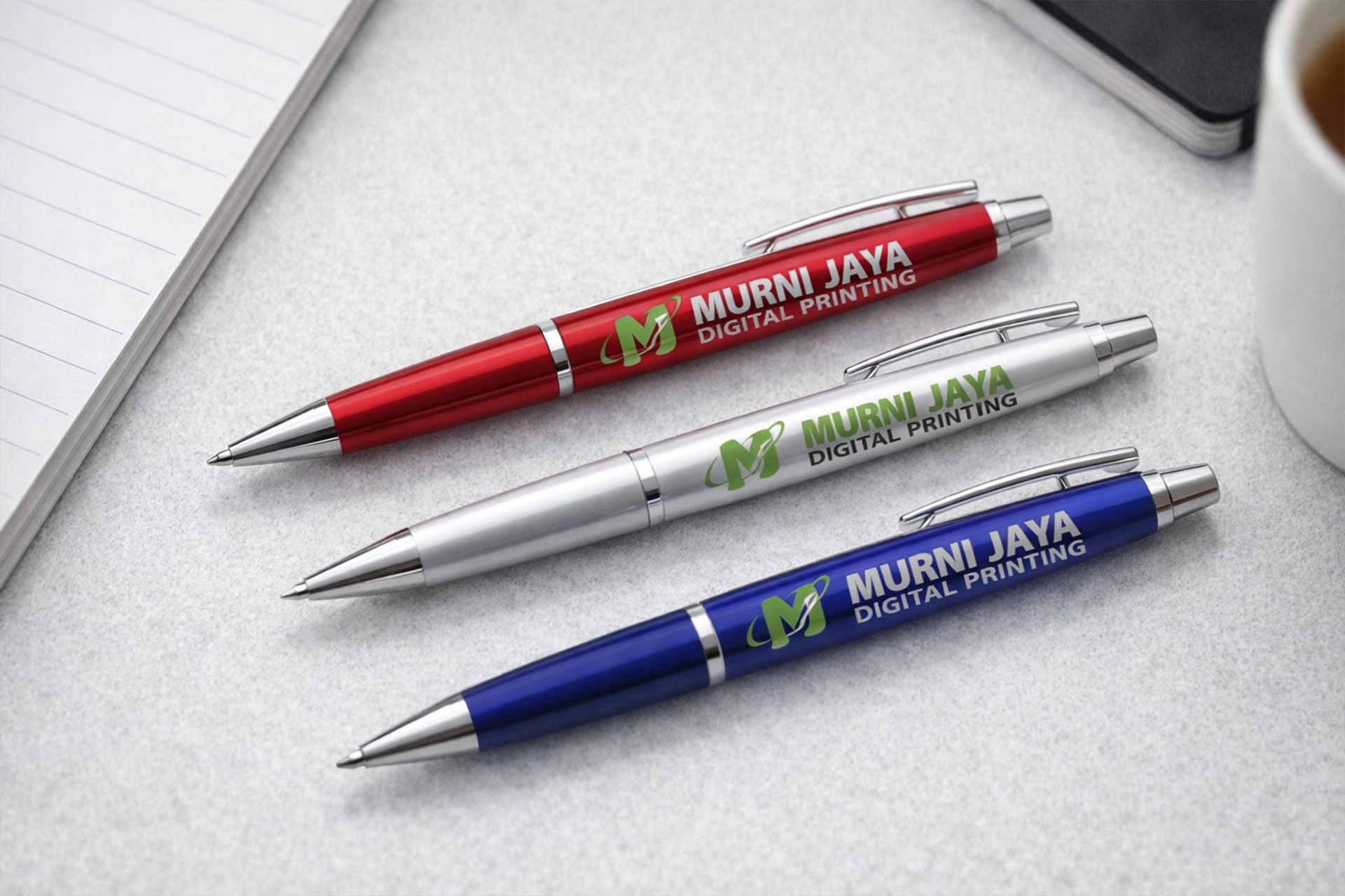 Murni Jaya Printing menyediakan layanan cetak pulpen promosi dengan hasil presisi dan awet. Teknologi cetak modern memastikan setiap detail desain tampil jelas. Perusahaan juga dapat memilih berbagai teknik cetak untuk kebutuhan branding corporate.