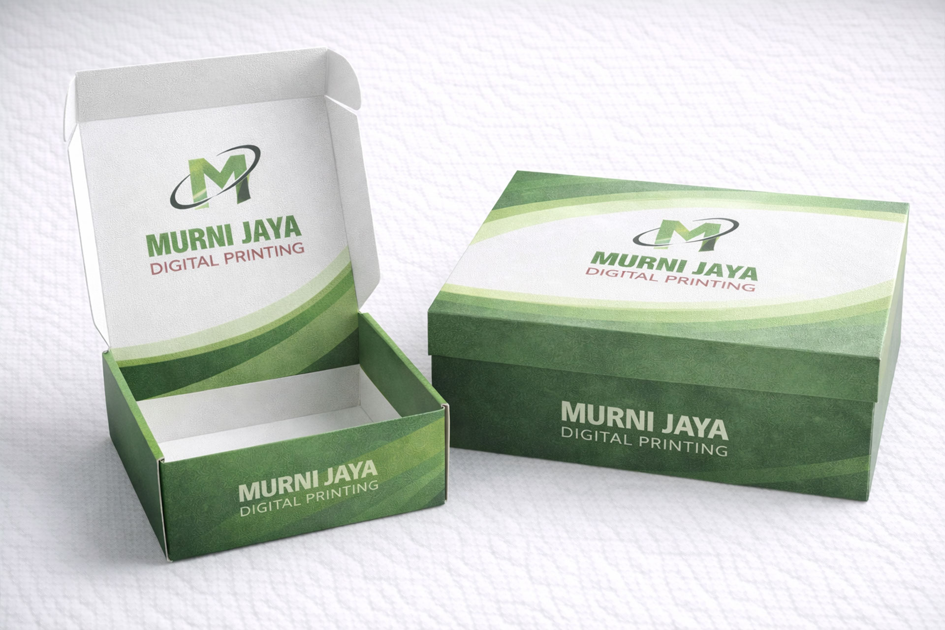 Tim produksi di Murni Jaya Printing mencetak packaging box custom menggunakan teknologi modern. Mereka memastikan warna konsisten, potongan presisi, dan struktur kemasan kuat.